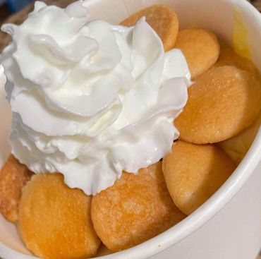 Layers of coconut whipped cream, vanilla wafers, and fresh banana slices.